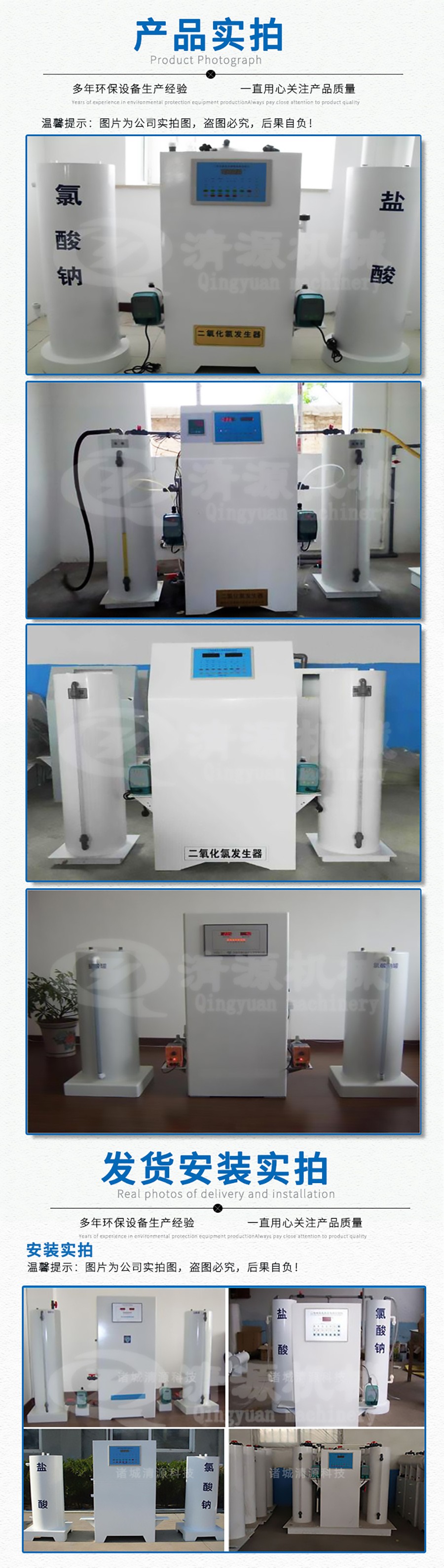 1、設(shè)備采用負(fù)壓曝氣、正壓注入技術(shù)來(lái)生產(chǎn)二氧化氯消的毒液