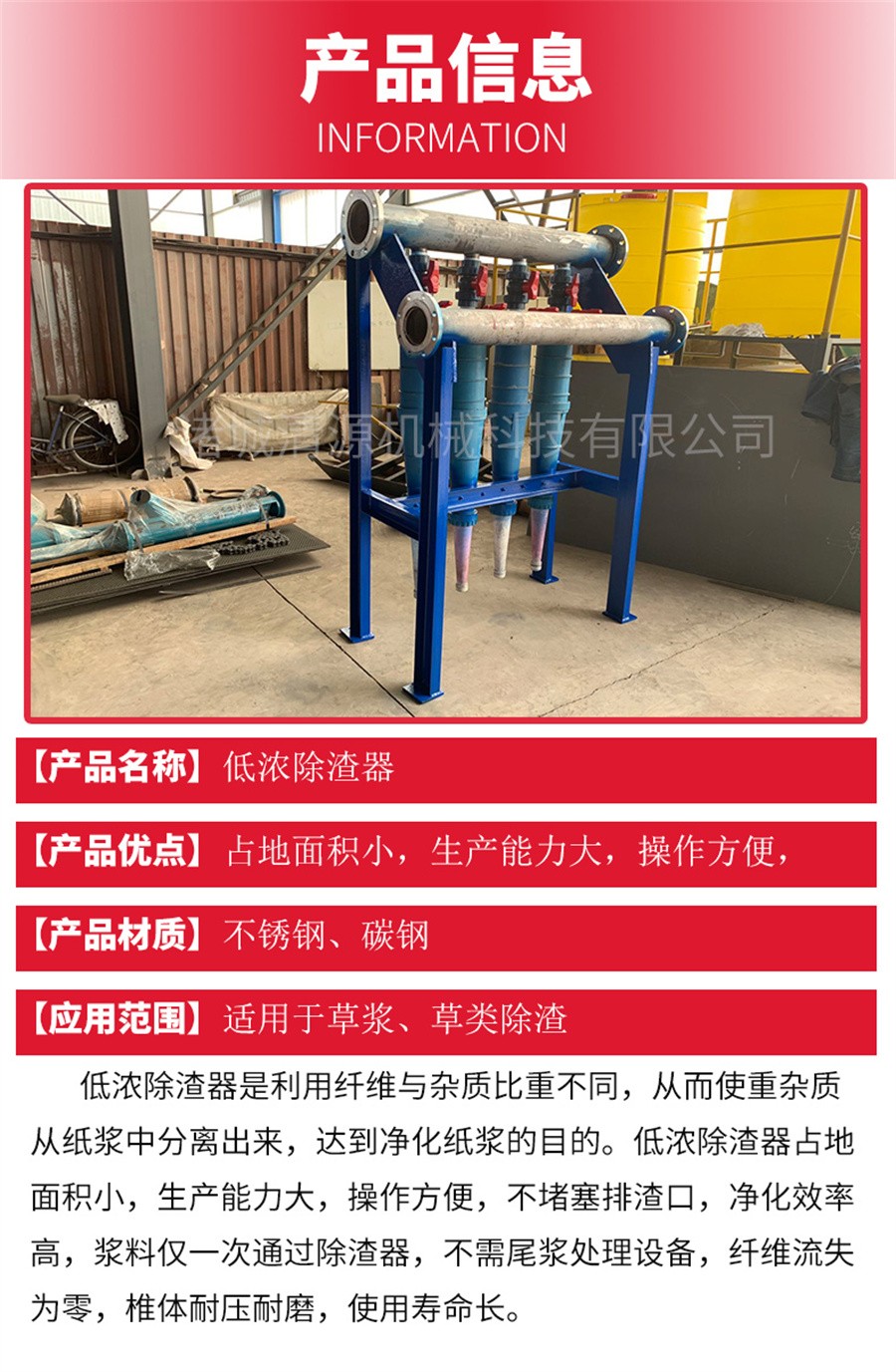 概述:ZDC系列雙錐低濃除渣器是利用纖維與雜質(zhì)比重不同,從而使重雜質(zhì)從紙漿中分離出來(lái),達(dá)到凈化紙漿的目的。該除渣器占地面積小,生產(chǎn)能力大,操作方便,不堵塞排渣口,凈化效率高,漿料僅一次通過(guò)除渣器,不需尾漿處理設(shè)備,纖維流失為零,椎體耐壓耐磨,使用壽命長(zhǎng)。