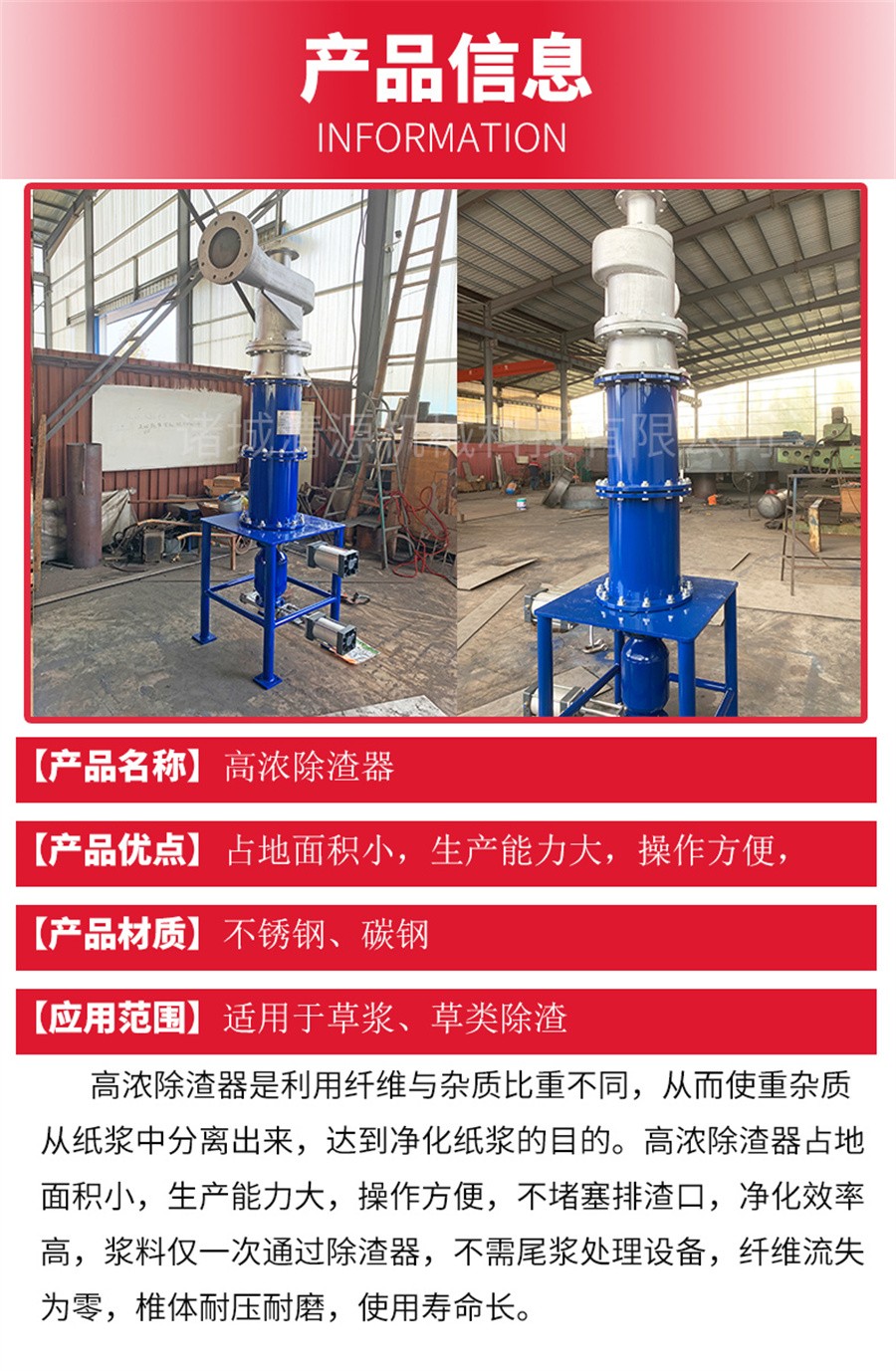 產品展示 高濃除渣器 概述:ZDC系列雙錐高濃除渣器是利用纖維與雜質比重不同,從而使重雜質從紙漿中分離出來,達到凈化紙漿的目的。該除渣器占地面積小,生產能力大,操作方便,不堵塞排渣口,凈化效率高,漿料僅一次通過除渣器,不需尾漿處理設備,纖維流失為零,椎體耐壓耐磨,使用壽命長。 此外,我公司還生產高濃水力碎漿機、地埋式污水處理設備、氣浮機、污泥壓濾機、固液分離設備等其他設備。 上一條:低濃除渣器下一條:高濃水力碎漿機