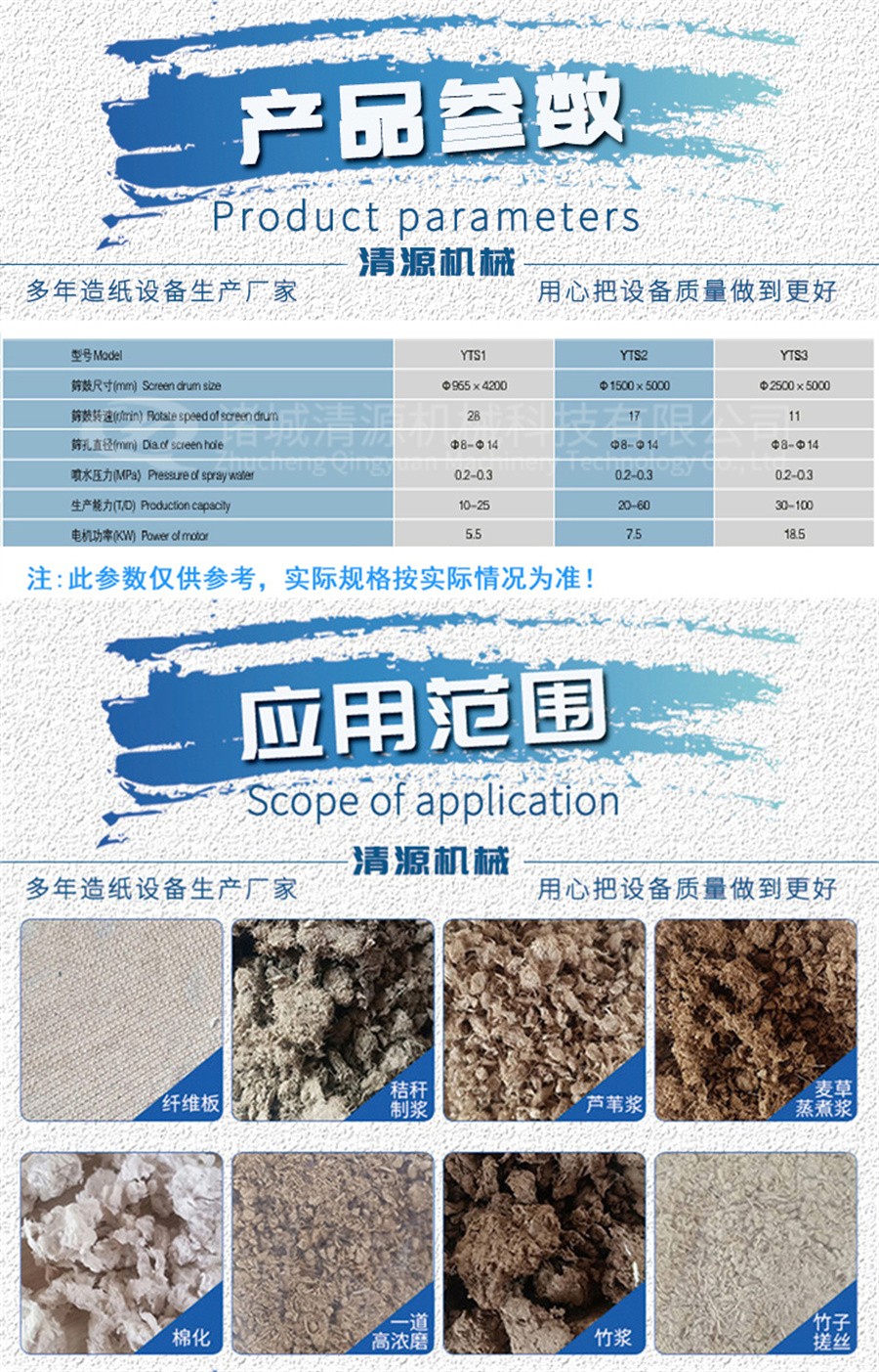 YTS系列圓筒篩用于廢紙制漿生產(chǎn)流程水力碎漿機(jī)之后,對(duì)碎解的廢紙進(jìn)行粗選,除去較大雜物,以減輕后續(xù)篩選設(shè)備的負(fù)擔(dān)。新型圓筒篩具有生產(chǎn)能力大、篩選效果好、結(jié)構(gòu)簡(jiǎn)單、維修方便等優(yōu)點(diǎn)。