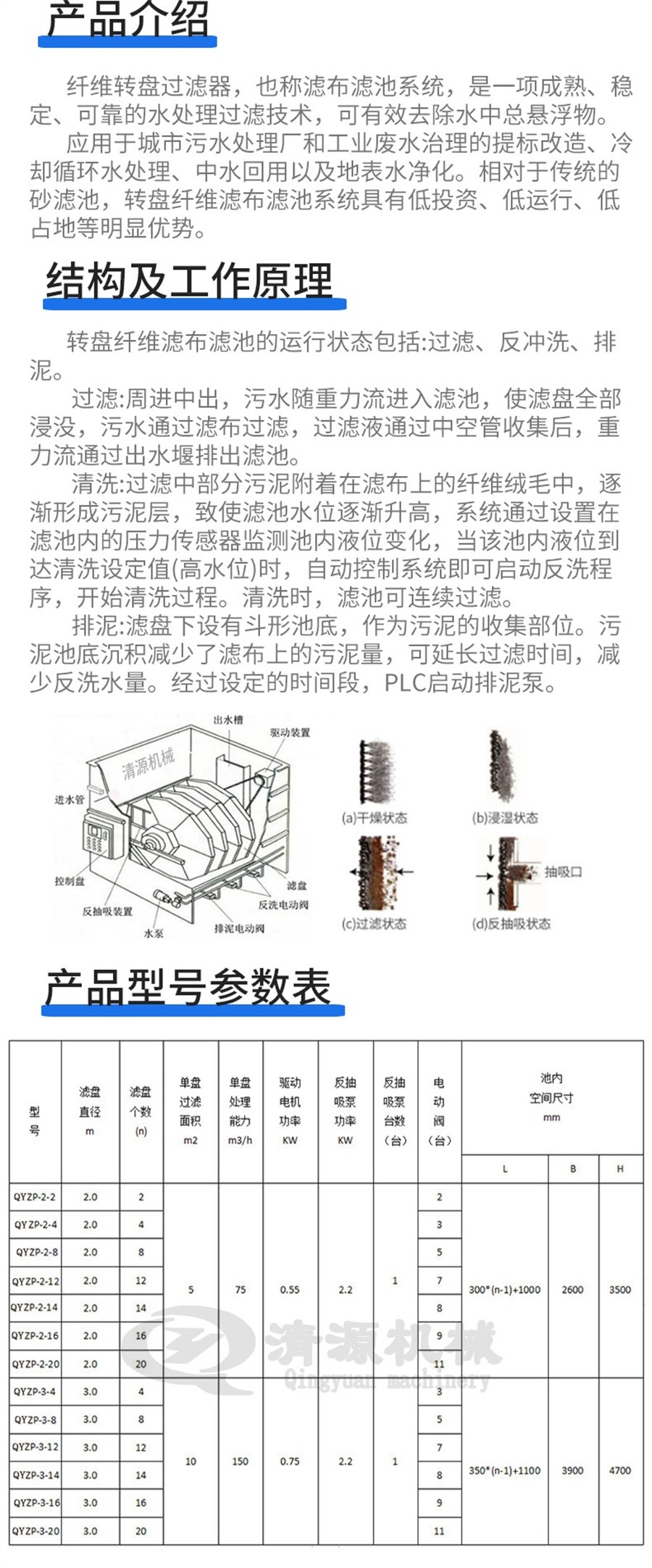 諸城清源機械科技有限公司纖維轉盤過濾器特點: